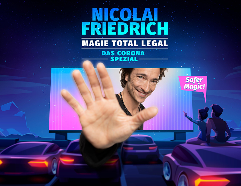 In dieser Folge berichtet Magier Nicolai Friedrich von seinem geplanten „Autokino-Auftritt“. Er wird am Sonntag, den 24. Mai 2020 im Stage Drive an der Jahrhunderhalle in Frankfurt stattfinden. Nähere Infos erhältst Du hier:
